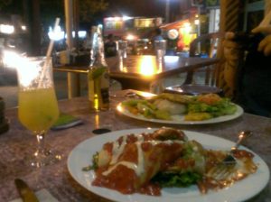 At the hotel, we sat at a table on the front veranda for dinner, next to the street that had turned into a huge party. I ordered a burrito, and, I swear to God, it was one of the best I’ve ever had. Sitting there in the warm air, in swimming suits and tank tops, eating a delicious meal while along the street people laughed, joked, and danced sealed the deal: the small, laid back town of Montezuma was one of the coolest places I’ve ever visited.